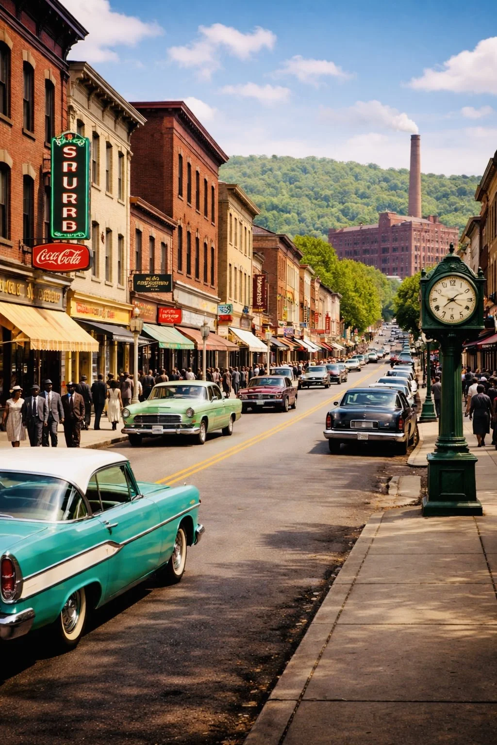 In the late 1950s and early 1960s, the train carries more than passengers—it carries presence. Well-dressed travelers step off into cities and stops along the way, moving with style, intention, and quiet confidence. In these imagined places, inspired by the richness of Black life in the North, moments unfold across refined spaces—from the hum of a jazz club to the stillness of a train platform, the quiet elegance of a hotel, the rhythm of a street or shop, or the arrival at a Black college filled with promise.